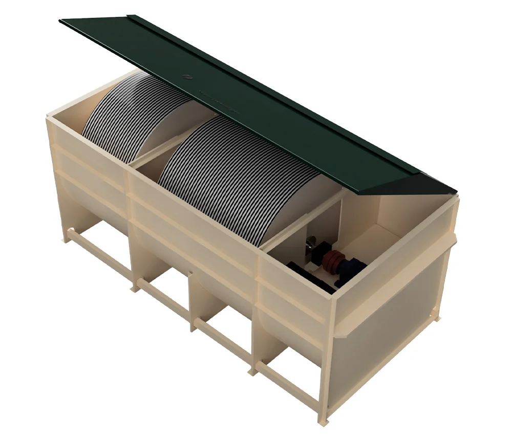 En la depuración interviene un tratamiento biológico aeróbico mediante lechos bacterianos fijos. Estos soportes están formados por un conjunto de discos en polipropileno un 40 % sumergidos. El movimiento de rotación asegura a la vez el contacto de las bacterias con el efluente, su oxigenación y la mezcla continua. En fase sumergida del ciclo de rotación de los discos, la biomasa degrada la materia orgánica y los componentes nitrogenados presentes en las aguas residuales. Cuando el biodisco se encuentra en fase de emersión, las bacterias toman el oxígeno atmosférico necesario para su respiración.