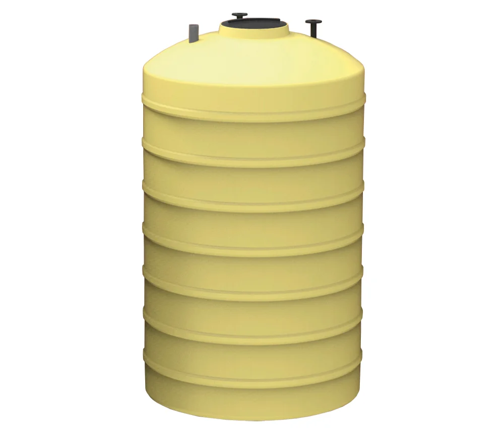Cisterna horizontal para enterrar para almacenar agua y productos químicos compatibles con la resina estándar de fabricación. Para ello será necesario conocer el producto químico, su concentración y temperatura de almacenado.