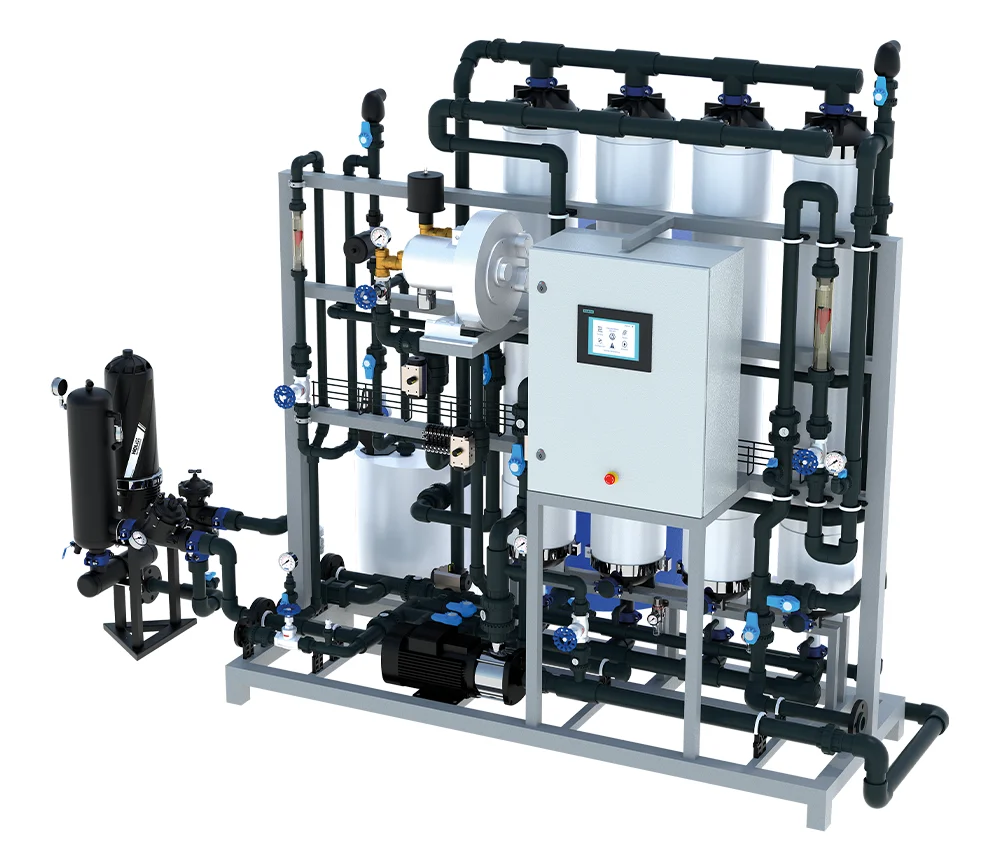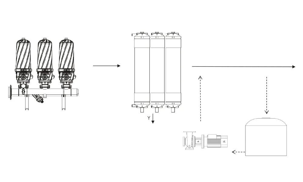 • Filtro Discos con sistema de autolimpieza asistida por aire de alta eficiencia y muy bajo consumo de agua y energía, con grado de filtración de 5-400 μm, para la eliminación de sólidos en suspensión y protección de membranas.