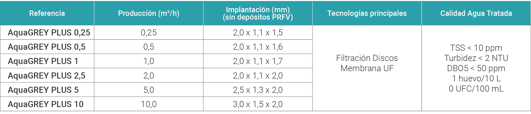 El agua gris se almacena en un depósito pulmón de bajo tiempo de retención y se condiciona para evitar males olores. Se eliminan los sólidos en suspensión para proteger las membranas de UF mediante filtración de discos de limpieza automática. Todo el sistema está totalmente automatizado para garantizar agua con calidad de reutilización, manteniendo los medios filtrantes libres de suciedad.