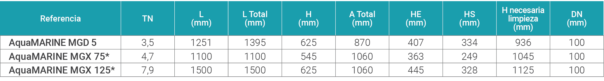 *Modelos disponibles con Cesta perforada para retención de sólidos (AquaIS) o con Bomba de extracción de sólidos (AquaAST).