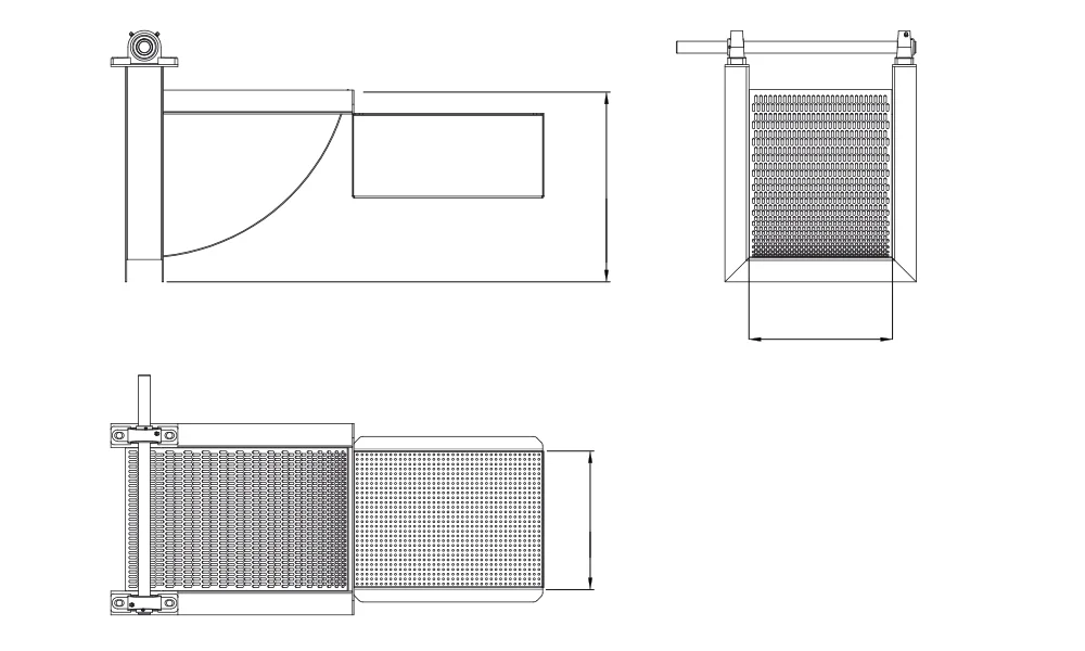 El agua residual pasa a través de la reja perforada donde quedan retenidos los sólidos de diámetro mayor al tamaño de la malla. Un temporizador acciona el motor del equipo haciendo funcionar el cepillo que arrastra las partículas retenidas dirigiéndolas al cesto-contenedor.