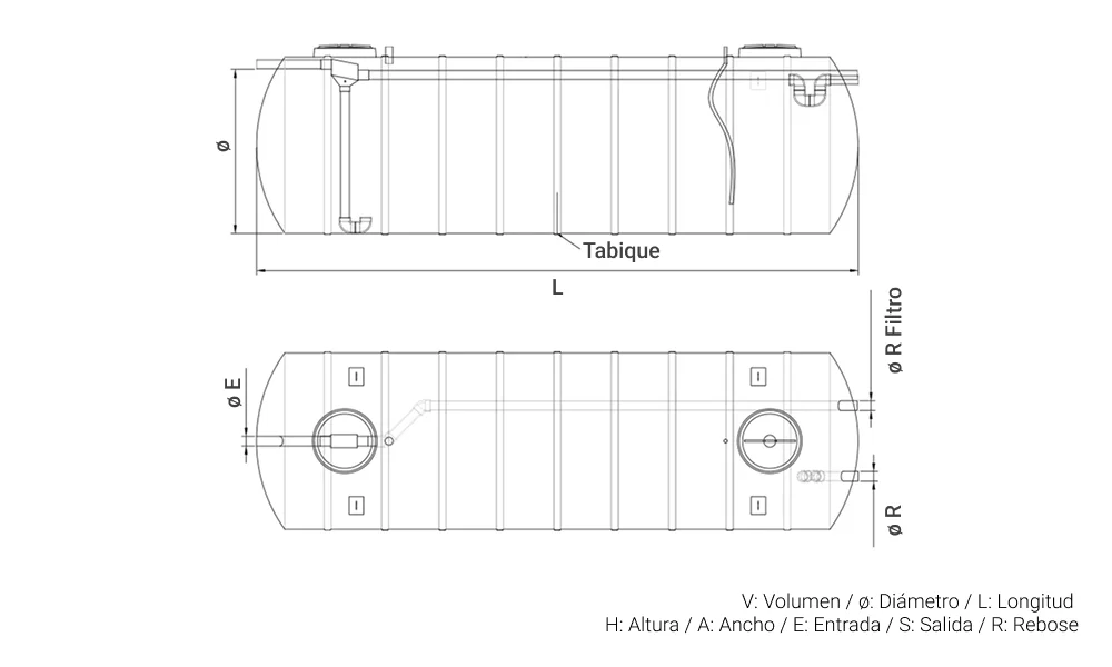 El Agua Pluvial procedente de la cubierta se acumula, después de pasar a través de un sistema de filtración, en el depósito de almacenamiento por una tubería de entrada. Una vez lleno, el exceso de agua pasa si hay excedente por un rebose. En el interior del depósito se posiciona una bomba eléctrica sumergible que, a través de un cuadro eléctrico de maniobra: Encendido/apagado permite accionarla para usar el agua acumulada habitualmente para el riego del jardín.