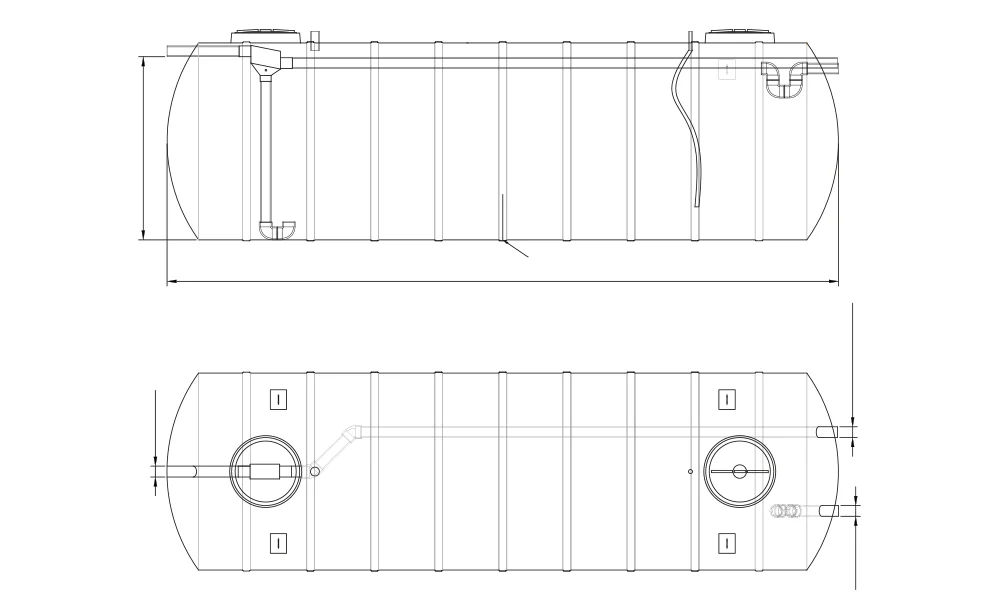 • Manguito para salida de aguas mediante bomba y boya de nivel mínimo.