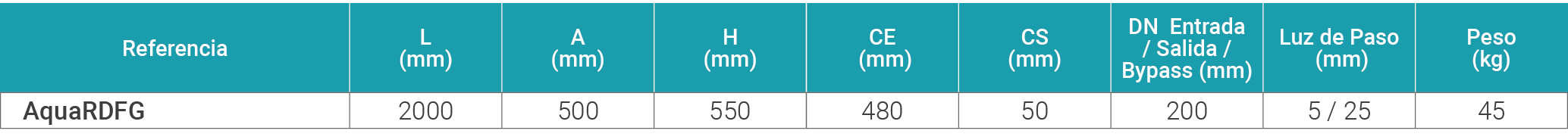 *Aqua Resmat se reserva el derecho a modificar las medidas. Documento no contractual. Los datos y valores se dan como indicación y pueden ser modificados sin previo aviso.