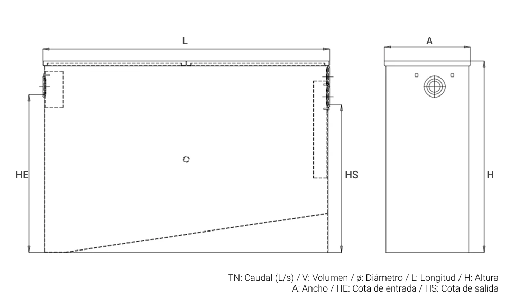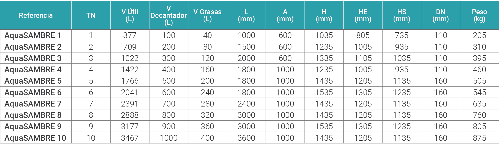 *Para otras capacidades, formatos y diámetros: consultar con el Departamenrto Técnico. / *Aqua Resmat se reserva el derecho a modificar las medidas. Documento no contractual.