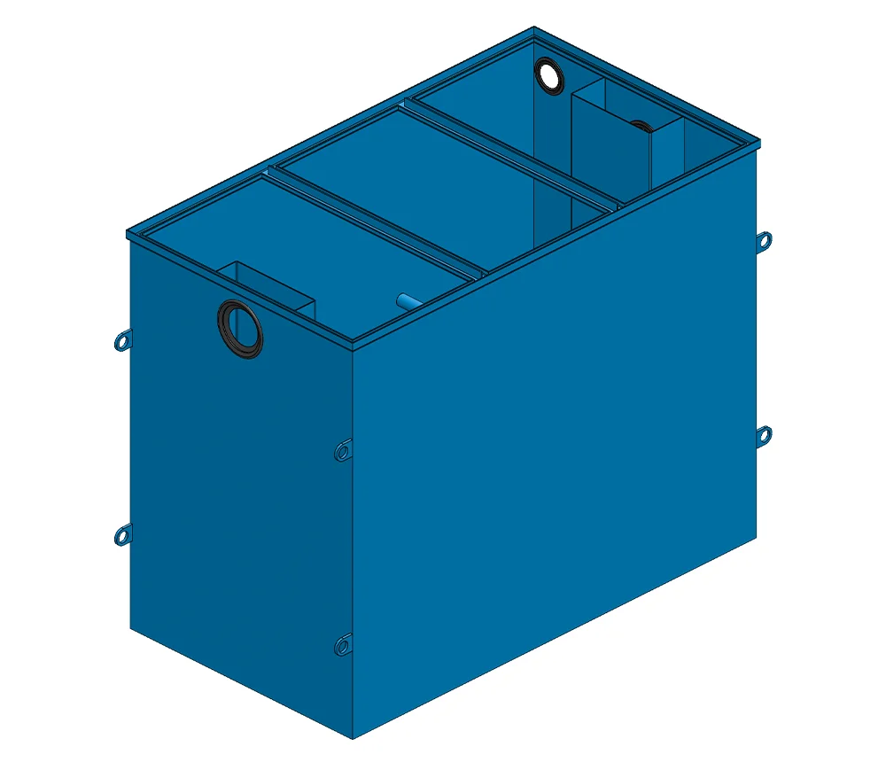 • La diferencia de densidad de los diferentes contaminantes permite separar en dos fases: los sólidos más grandes, como restos de comida u otros desechos, se depositan en el fondo del separador, mientras que las grasas y los aceites flotan en la superficie debido a su menor densidad.