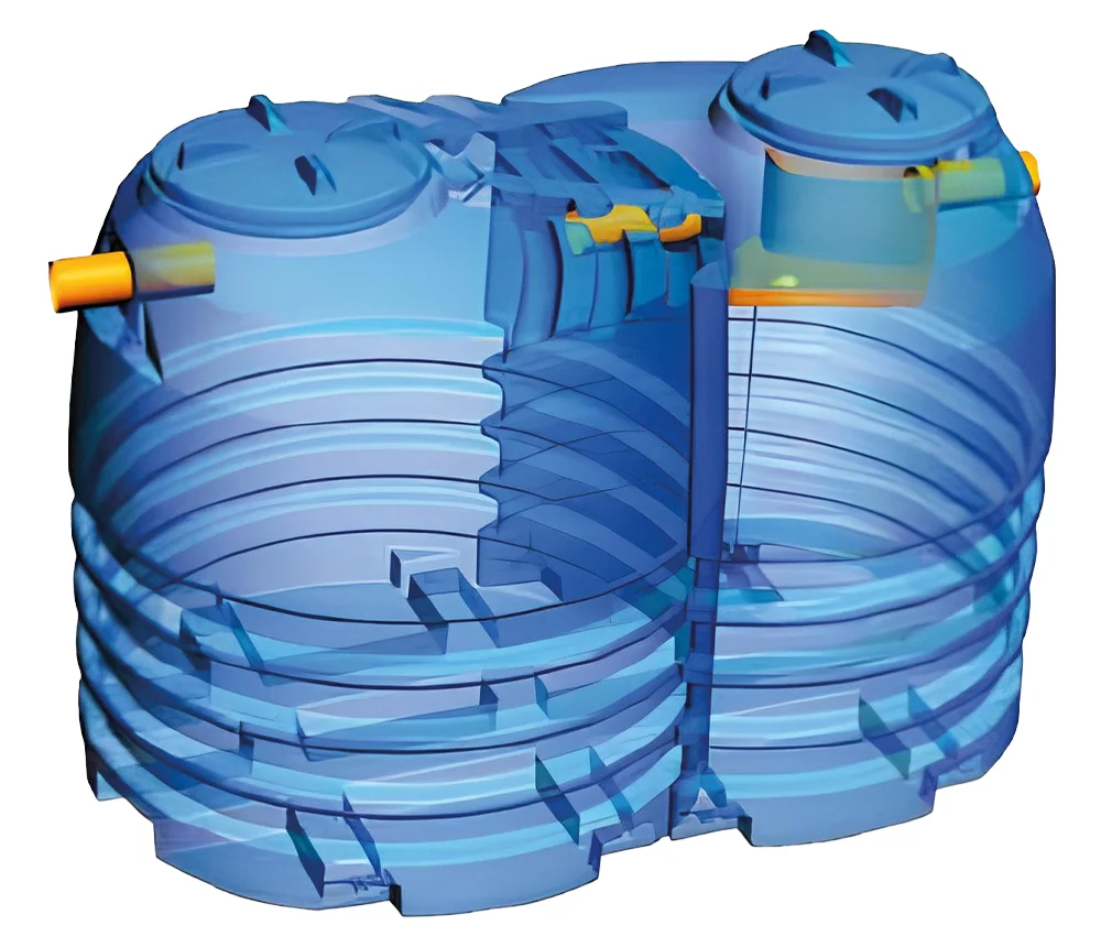 Está formado por dos compartimientos para sedimentar y digerir la materia orgánica mediante procesos anaeróbicos.