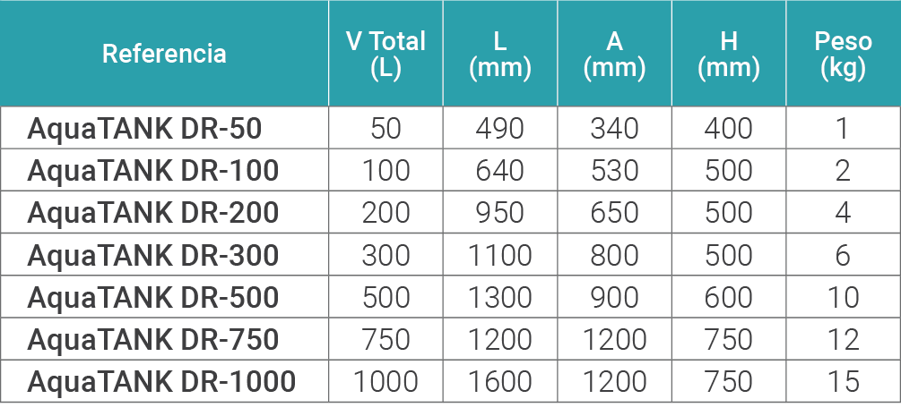 *Aqua Resmat se reserva el derecho a modificar las medidas. Documento no contractual. Los datos y valores se dan como indicación y pueden ser modificados sin previo aviso.