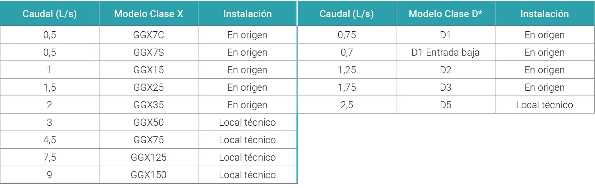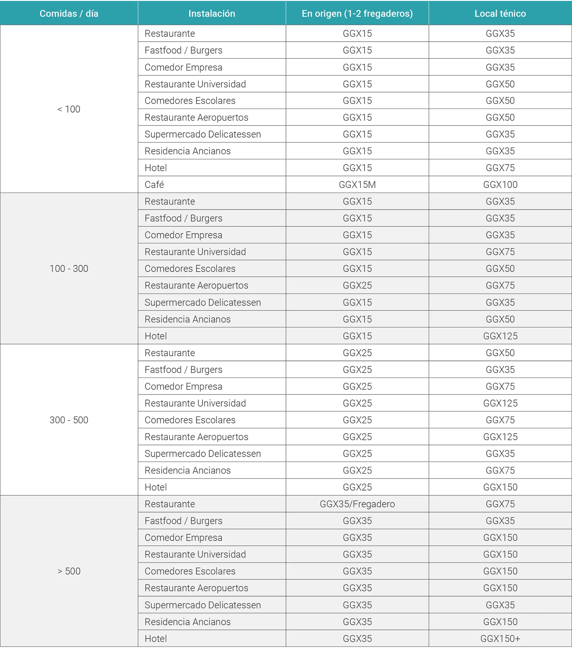 El caudal máximo puede ser determinado también por el número de comidas al día (consultar dimensionado y elección de modelo).